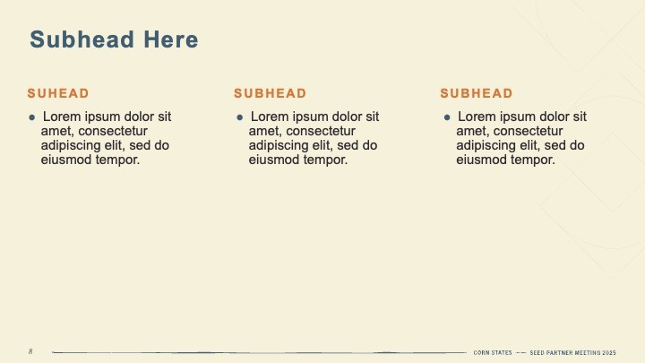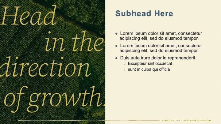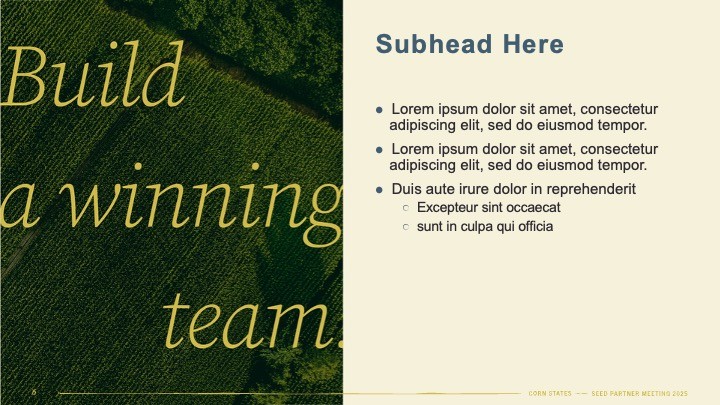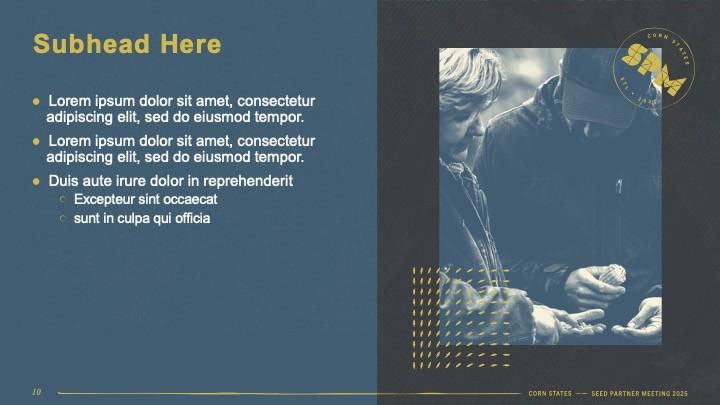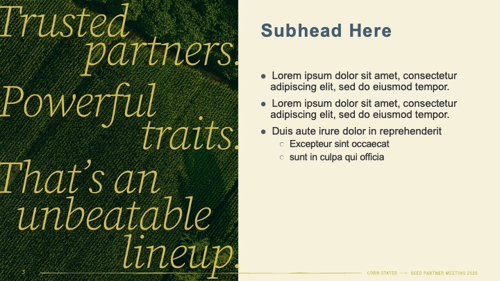 In response to the client’s request for a baseball-inspired direction, I developed two alternate concepts exploring distinct visual and messaging approaches. The left-hand concept leveraged Corn States' new brand patterns to convey dynamic motion, incorporating kinetic typography to emphasize teamwork and taking decisive action for the success of the business. The to the right focused on the theme of collaboration, drawing visual inspiration from vintage science textbooks to evoke curiosity, discovery, and the shared pursuit of progress.
